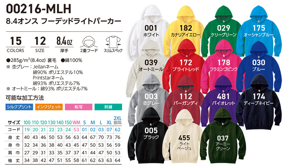 衣料百貨大槻 プリントウェア トムス株式会社(プリントスター) 00216-MLH 8.4オンス フーデッドライトパーカー