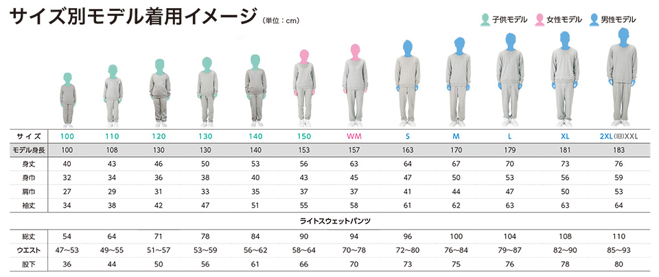 サイズ 100〜150・WM・S〜2XL