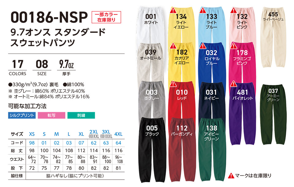 00186-NSP/9.7オンス スタンダードスウェットパンツ