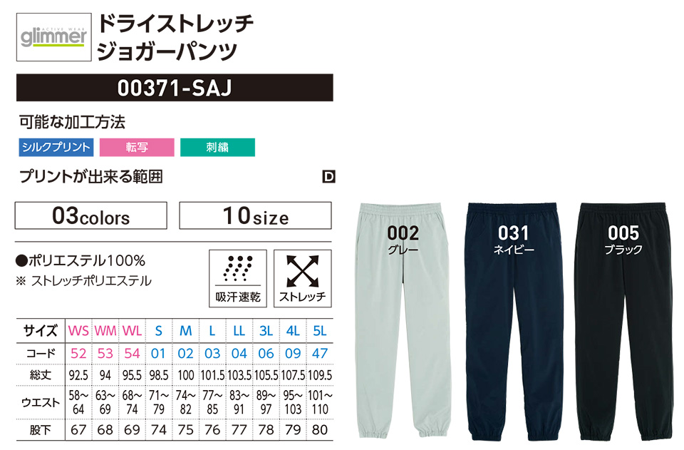 衣料百貨大槻 プリントウェア トムス株式会社(プリントスター) 00371-SAJ ドライストレッチジョガーパンツ
