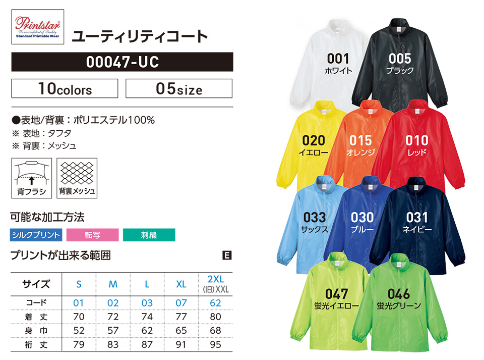 衣料百貨大槻 プリントウェア トムス株式会社(プリントスター) 00047-UC ユーティリティコート