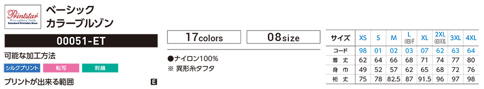 衣料百貨大槻 プリントウェア トムス株式会社(プリントスター) 00051-ET ベーシックカラーブルゾン