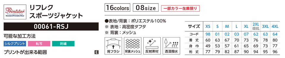 衣料百貨大槻 プリントウェア トムス株式会社(プリントスター) 00061-RSJ リフレク スポーツジャケット