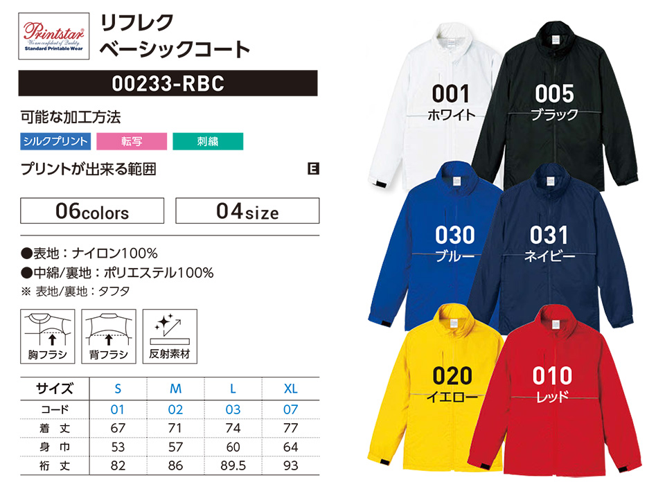 衣料百貨大槻 プリントウェア トムス株式会社(プリントスター) 00233-RBC リフレク ベーシックコート