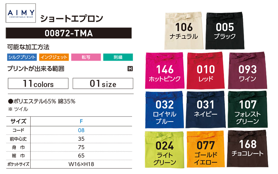 衣料百貨大槻 プリントウェア トムス株式会社(プリントスター) 00872-TMA ショートエプロン