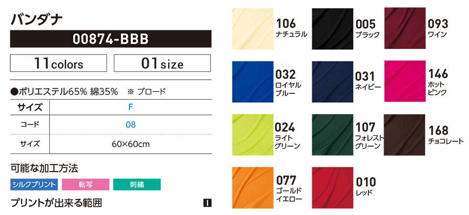 衣料百貨大槻 プリントウェア トムス株式会社(プリントスター) 00874-BBB バンダナ