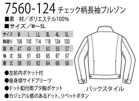7560-124/チェック柄長袖ブルゾン |