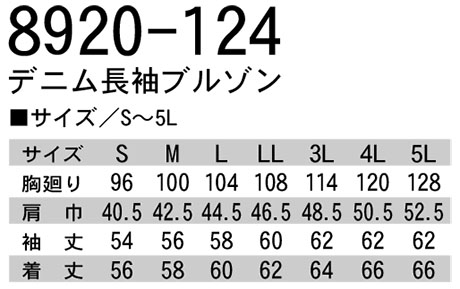 8920-124/デニム長袖ブルゾン |