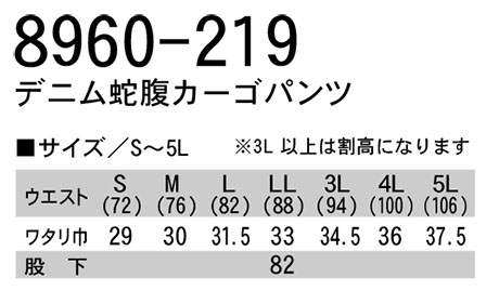 8960-219/デニム蛇腹カーゴパンツ |