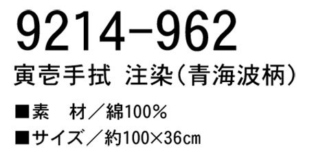 9215-962/寅壱手拭 注染(青海波柄)刺子 |