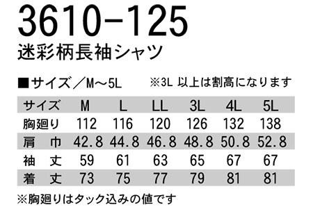3610-125/迷彩柄長袖シャツ |
