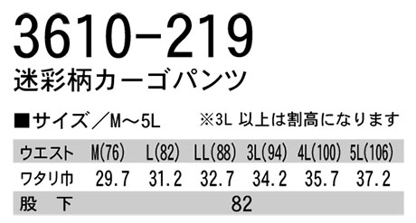 3610-219/迷彩柄カーゴパンツ |