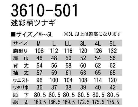 3610-501/迷彩柄ツナギ |