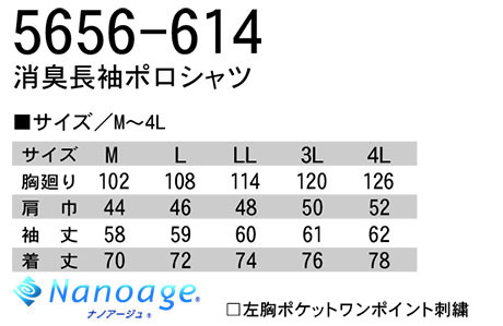 5656-614/消臭長袖ポロシャツ