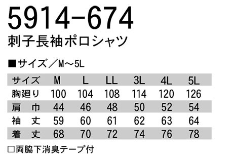 5914-674/刺子長袖ポロシャツ
