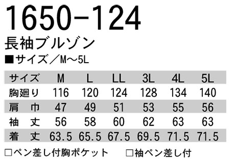1650-124/長袖ブルゾン