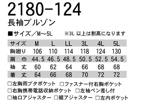 2180-124/長袖ブルゾン |