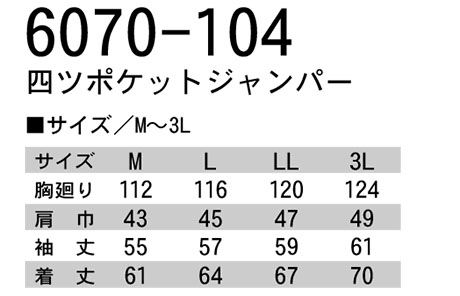 TORAICHI【寅壱】オールシーズン作業服(ワークウェア) REGULER-ITEM 6070-104/四ツポケットジャンパー