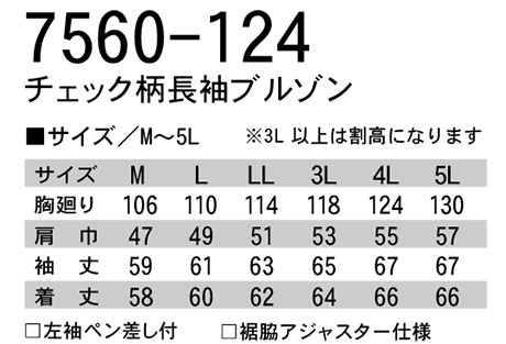 7560-124/チェック柄長袖ブルゾン |