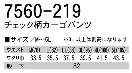 7560-219/チェック柄カーゴパンツ |