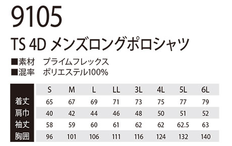 9105/TS 4D メンズロングポロシャツ |