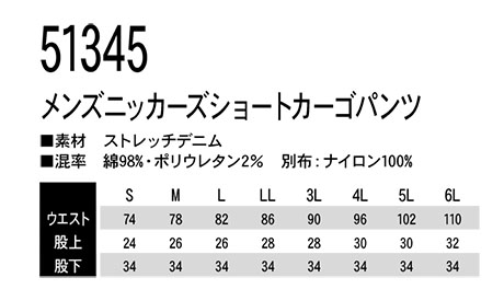 51345/メンズニッカーズショートカーゴパンツ |