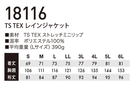 18116/TS TEX レインジャケット |