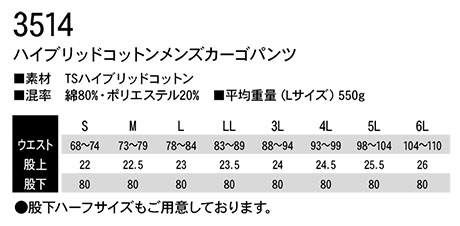 3514/ハイブリッドコットンメンズカーゴパンツ |