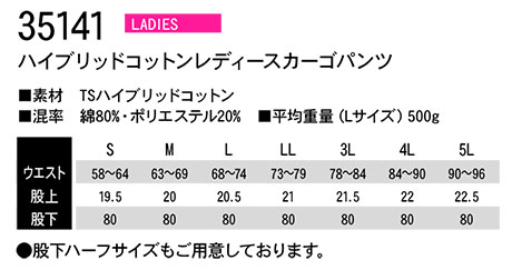 35141/ハイブリッドコットンレディースカーゴパンツ |