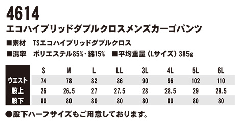 4614/エコハイブリッドダブルクロスメンズカーゴパンツ |
