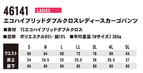 46141/エコハイブリッドダブルクロスレディースカーゴパンツ |