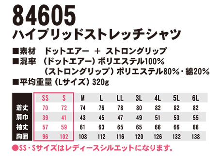 84605/ハイブレッドストレッチシャツ |