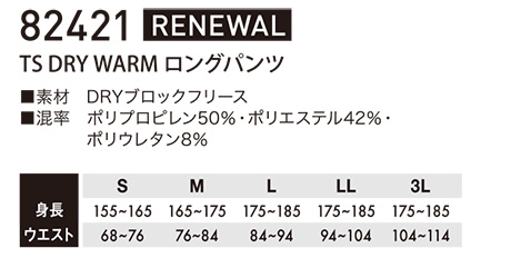 藤和「TS-DESIGN」作業服(秋・冬)ワークウェア 82421/TS DRY WARRMロングパンツ