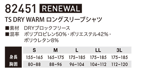 藤和「TS-DESIGN」作業服(秋・冬)ワークウェア 82451/TS DRY WARRMロングスリーブシャツ
