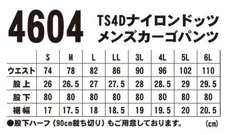 4604/TS 4D ナイロンドッツ メンズカーゴパンツ |