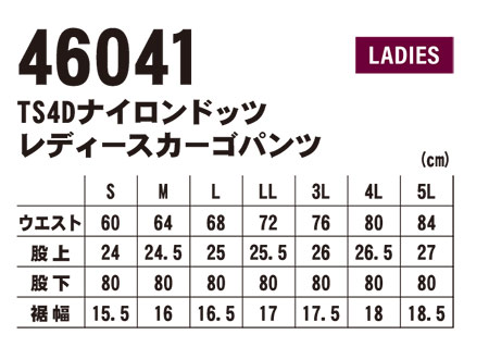 46041/TS 4D ナイロンドッツ レディースカーゴパンツ |