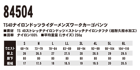 84504/TS 4D ナイロンドッツライダーメンズワークカーゴパンツ |