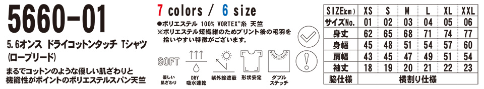 衣料百貨大槻 プリントウェア ユナイテッドアスレ (United Athle) 5660-01/5.6オンス ドライコットンタッチTシャツ