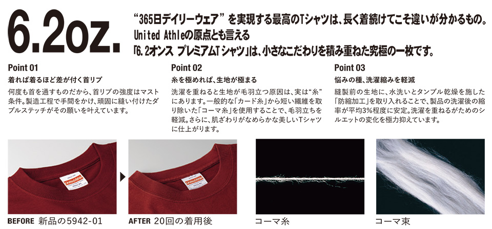 衣料百貨大槻 プリントウェア ユナイテッドアスレ (United Athle) 5942-01/6.2オンス プレミアムTシャツ