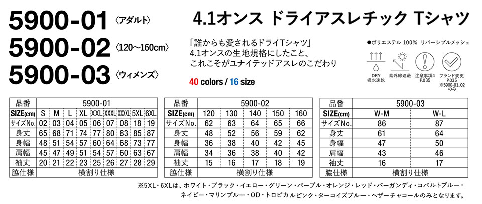 5900-01(アダルト)/5900-02(120〜160cm)/5900-03(ウィメンズ)