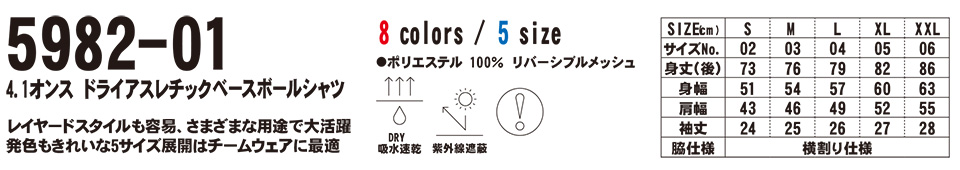 衣料百貨大槻 プリントウェア ユナイテッドアスレ (United Athle) 5982-01/4.1オンス ドライアスレチック ベースボールシャツ