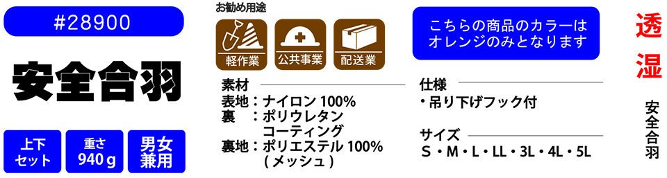 株式会社アーヴァン 【URVAN】 (レインウェア) #28900/安全合羽