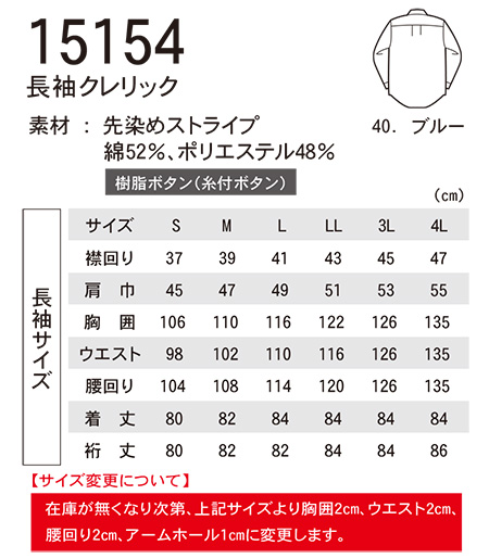 ジーべックの作業服(オールシーズン) 15154/長袖クレリック