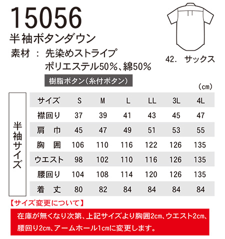 ジーべックの作業服(オールシーズン) 15056/半袖ボタンダウン