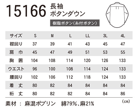 ジーべックの作業服(オールシーズン) 15166/長袖ボタンダウン