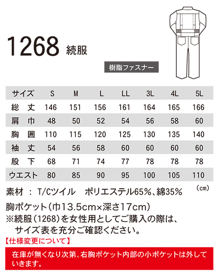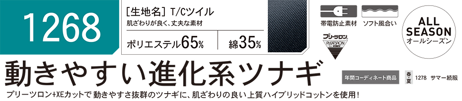 ユニフォーム&安全靴のジーベック 【XEBEC】 オールシーズン用作業服(オーバーオール) 1268/続服
