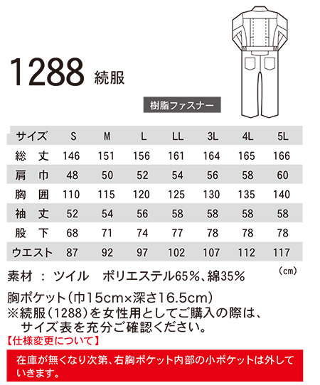 ユニフォーム&安全靴のジーベック 【XEBEC】 オールシーズン用作業服(オーバーオール) 1288/続服