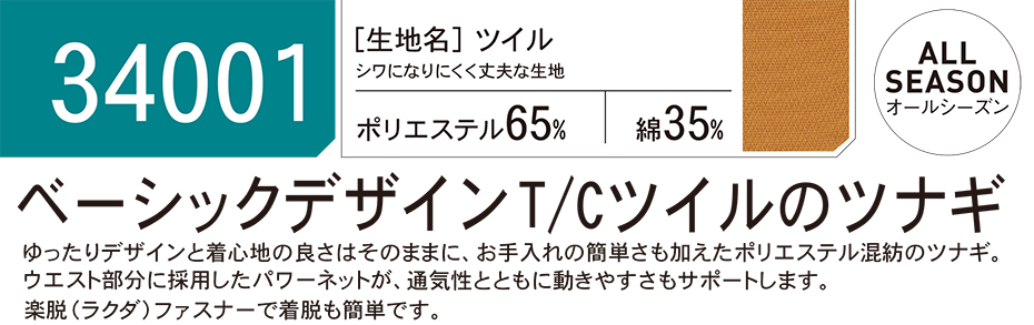 ユニフォーム&安全靴のジーベック 【XEBEC】 オールシーズン用作業服(オーバーオール) 34001/続服