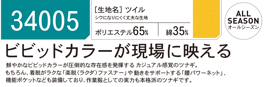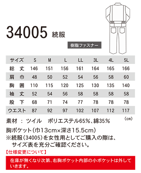 ユニフォーム&安全靴のジーベック 【XEBEC】 オールシーズン用作業服(オーバーオール) 34005/続服