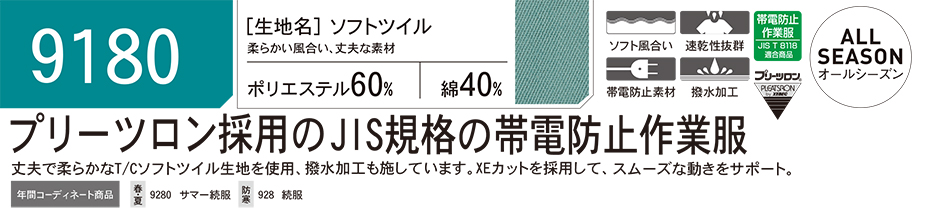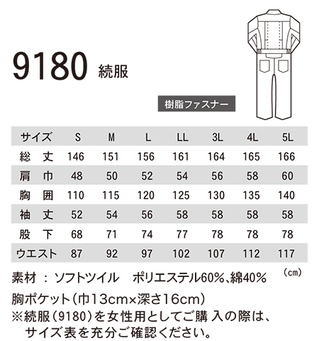 ユニフォーム&安全靴のジーベック 【XEBEC】 オールシーズン用作業服(オーバーオール) 9180/続服